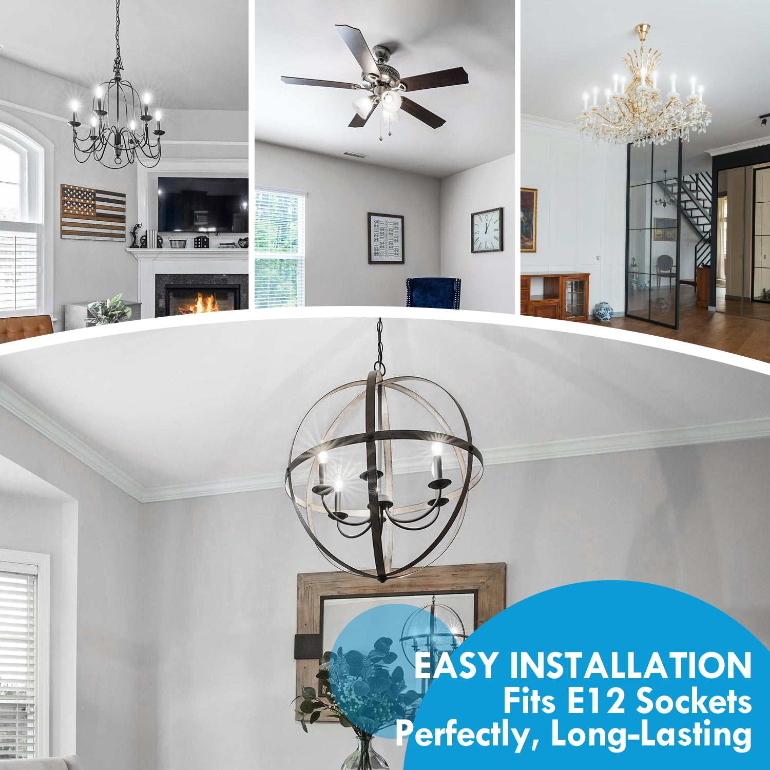 【Easy Installation, Widely Used & Long Lifespan】 These E12 LED bulbs feature a standard American candelabra base for easy installation. Perfect for chandeliers, sconces, ceiling fans, and other decorative fixtures. Designed for durability, they offer a long